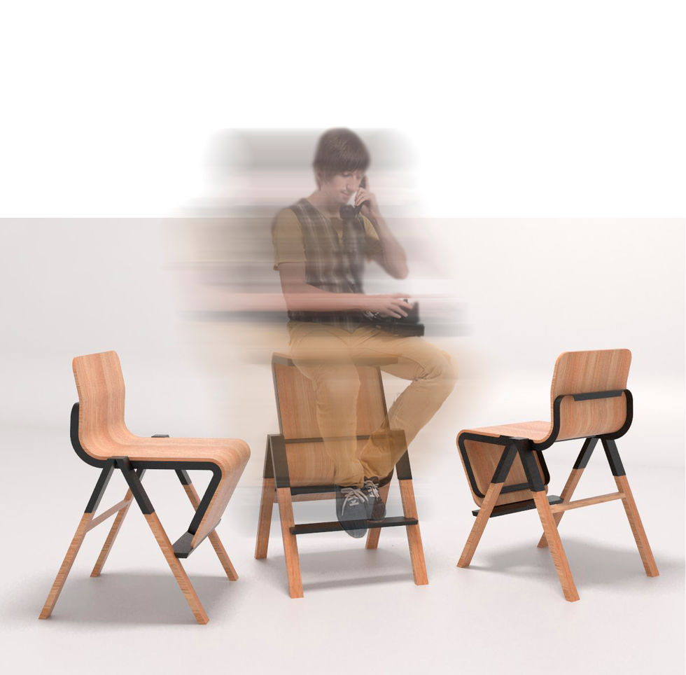 Стул - трансформер "SANSARA". Это стул - на нем сидят, а это стол, но за ним не едят, а можно поставить ноутбук и работать или выпить чашку кафе...Бурлящий жизненный ритм современности обозначил рождение этой идеи. Предназначен сей предмет для общественных помещений, например, кафе, в качестве барного стула или же для уличных кафе, в качестве маленького кофейного столика и стула. Для лекционных помещений стул модифицируется в скамью с поворотными сегментами, с настольной поверхностью. Так и в жилом пространстве, например, в малогабаритной квартире такой предмет будет очень полезен! Механизм поворота и фиксаторы - авторская разработка (секретный ингредиент)! Стул исполнен из клеено гнутой фанеры, фанерованной натуральным шпоном, в сочетании с металлической конструкцией.
