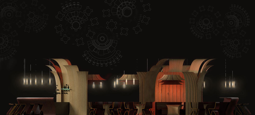 Концепция кафе-бара "LIMPOPO" построена на модульной основе, что означает мобильность и вариабельность. Эту основу составляют три модульных элемента изогнутой формы, похожих на "лепесток", различных по высоте и ширине. Компоновка этих элементов между собой образует ширму. Барная стойка также состоит из изогнутых сегментов, что позволяет варьировать радиусом и длинной. Ширма, в свою очередь, организует внешнее и внутреннее пространство, где с внешней стороны располагается барная стойка, а внутри уютное посадочное место с мягкой зоной. Вокруг подобной ширмы выстраиваются столики. И... але оп! Кафе-бар организован! Дислокация кафе-бара это большие торговые, выставочные площадки, зоны аэропорта, вокзала.